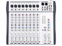 8路MIC平衡式话筒输入、2路立体声线路输入,1条AUX辅助输出;
