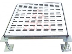 全钢组成,表面采用HPL货PVC冲孔贴面;面板选用上海宝钢SPCCID 硬质钢板高压冲孔,底部为方管手工焊接,属国内首创。进口静电喷塑,四周导电边嵌条镶边,支座、横梁选用方管模压成型,丝杆可任意调节高度。