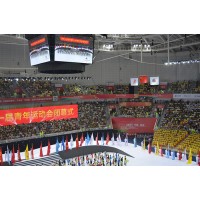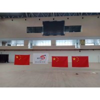 自动升旗系统的功能:升旗时间与歌曲播放时间(国歌或会歌等)同步,并保证升旗高度符合设计要求——对于2号旗帜,旗杆高度距地面11-18米,对于1号旗帜为14-18米;旗杆最多可以悬挂5面旗帜,并做成可伸缩旗杆(组合旗杆,即旗杆至少可以悬挂3面旗帜,再加上延长杆后可以分别悬挂4或5面旗帜);具有完善的保护功能,设立两极限位开关,并有机械防冲顶保护功能;升旗控制方式分本地手动、本地自动、远程控制三种方式,本地控制通过安装在系统控制柜中的按钮和液晶触摸屏来实现,远程控制通过联网的工业级电脑控制主机来实现。手动控制方式采用继电器控制回路;本地自动控制采用嵌入式控制器进行控制,并提供触摸液晶屏作为人机界面;远程控制有远程控制电脑主机实现;总之,整个系统采用三级保护手段,保证系统可以在远程电脑死机、网络通讯中断、本地控制器损坏、变频器故障等恶劣条件先完成升旗任务。远程控制主机可以控制最多31套升旗设备分别升降,并提供同步符合专业要求的音频输出;远程控制主机具有友好的用户界面,完善的安全认证机制;系统已包含40多个经相关国际正式比赛组委会批准的国歌库和130多个国家的国旗库;系统可以随时增减数据库中的数据,满足增加国旗国歌的需求。远程控制主机可以接入以太网,并提供程序调用接口,从而可以使网络上的授权用户来控制升旗系统。系统采用开放的平台,便于系统的扩展,利于场馆的系统集成